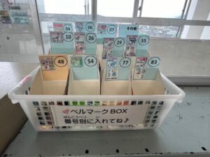 各クラスの教室には、ベルマーク回収箱が設置されており、児童は家庭にあるベルマークを集めて持参します。