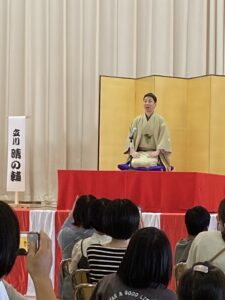 今回の講師は、 毎週日曜日17時半より放送(日本テレビ)している「笑点」で今年の4月より大喜利メンバーとなった、立川 晴の輔さんが落語講座と落語を披露してくださいました。