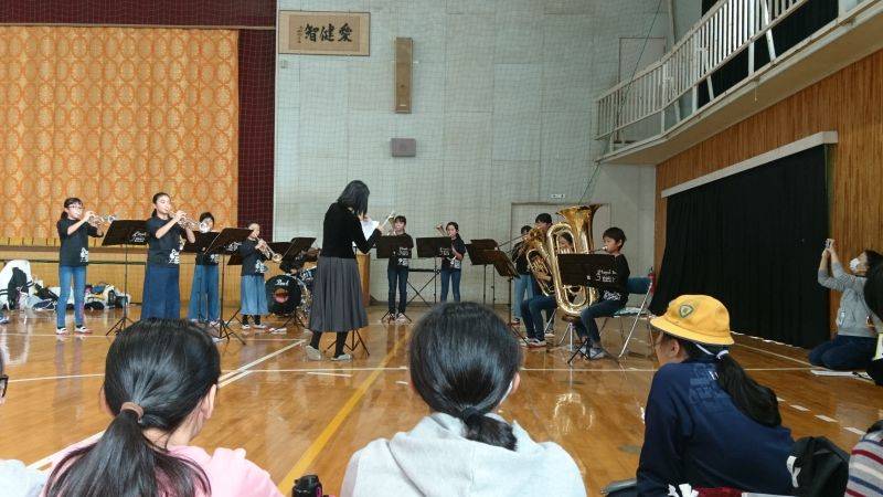 東っ子祭の終盤、体育館でミニコンサートを開催しました。時間が近づくと、校内のあちこちから集まってくる来る子どもたちの姿が♪
