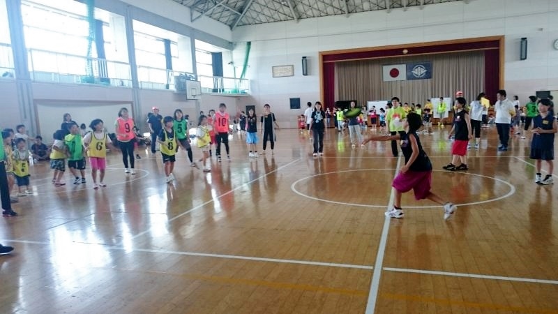 今年度は、愛媛県レクリエーション協会の方を講師にお迎えし、体を動かす活動を楽しみました。小・中学生および保護者の皆様、合わせて145名もの参加となり、体育館は熱気でいっぱいでした。