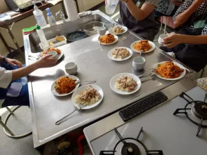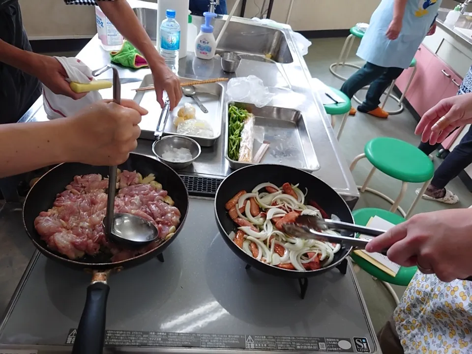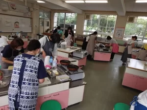 各グループに分かれて調理実習。