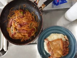 「パリパリチキンソテー&リゾット」と「ワンパンナポリタン」の2品!